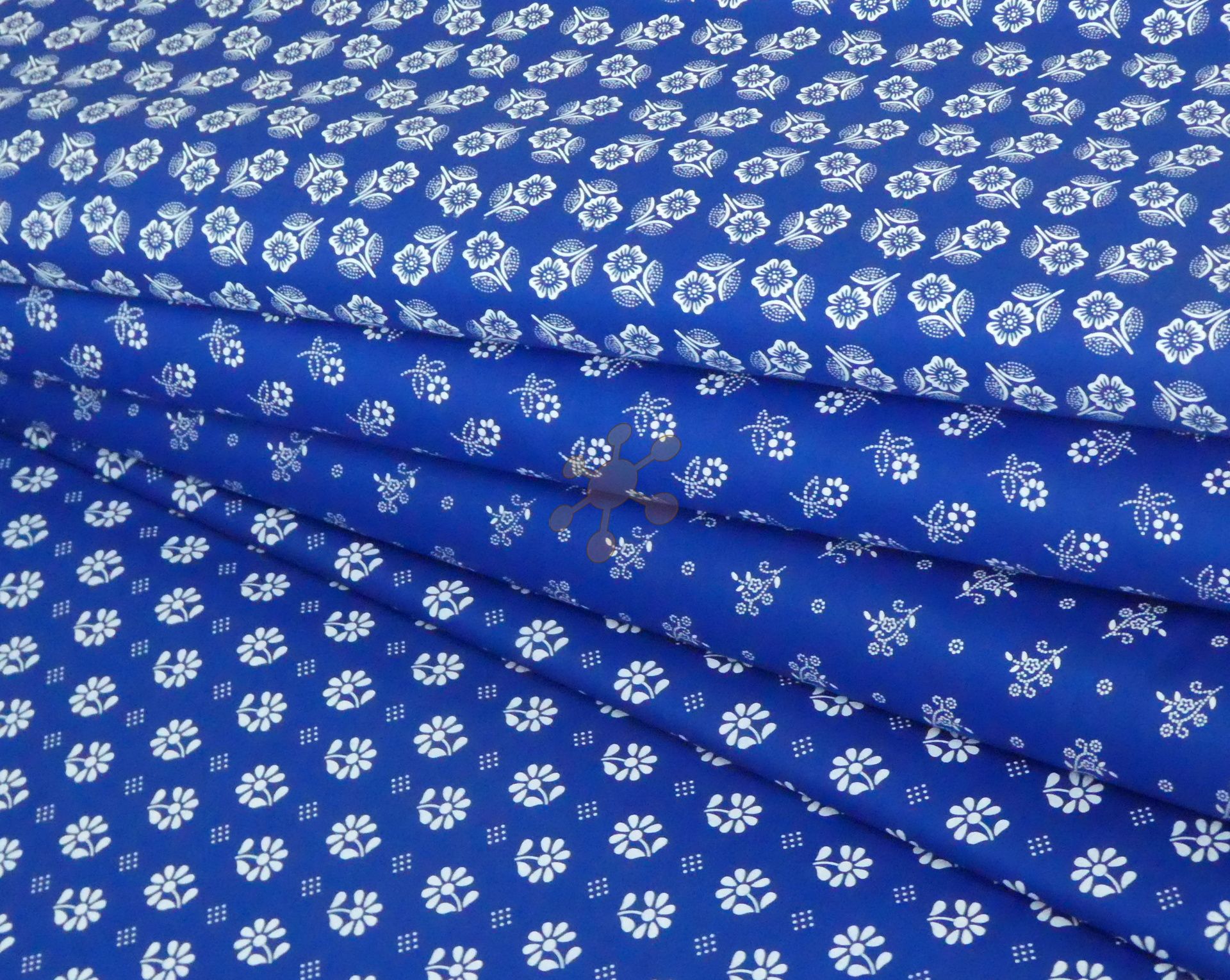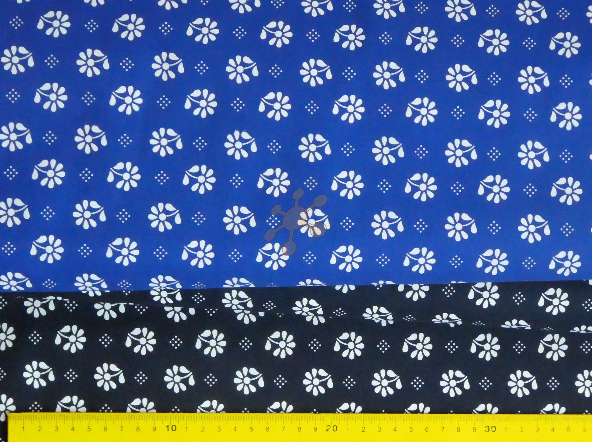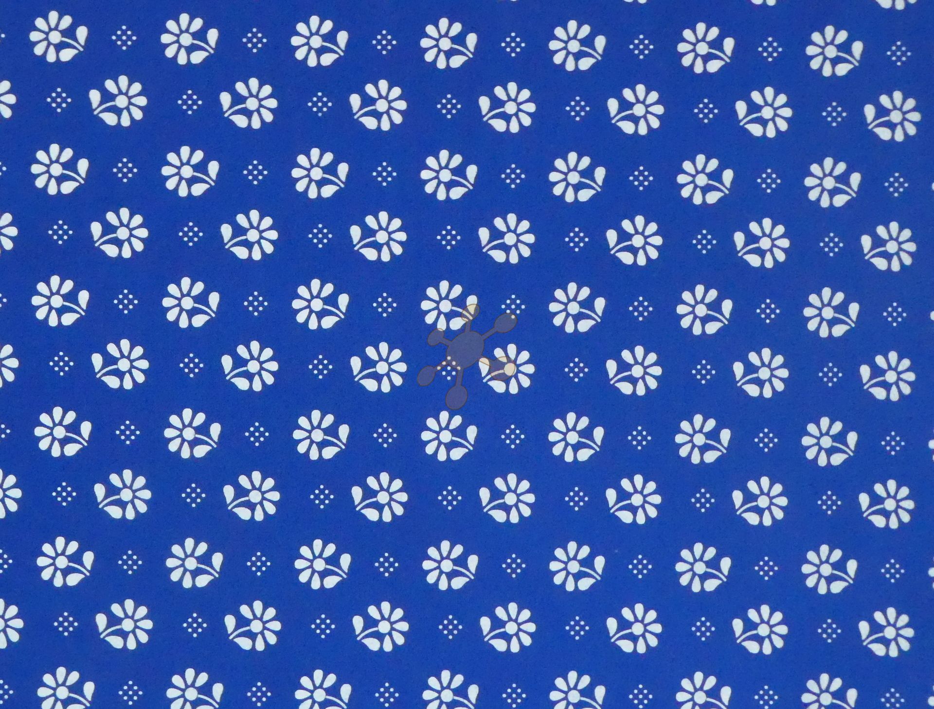 Modré plátno s bielou potlačou tradičného ľudového vzoru podľa slovenskej raznice.