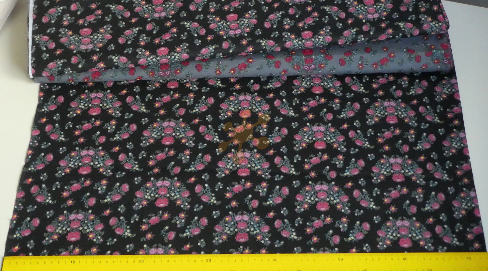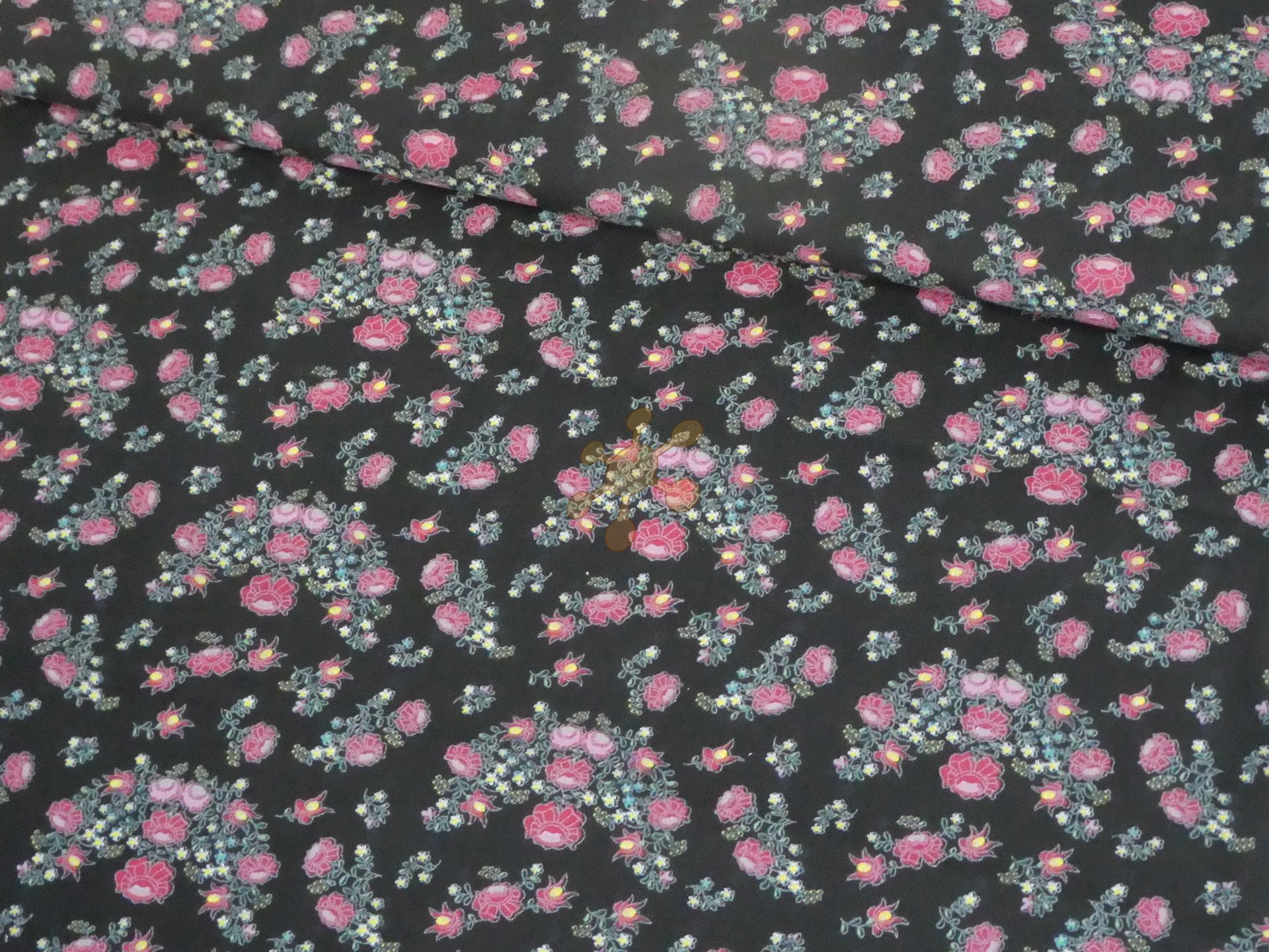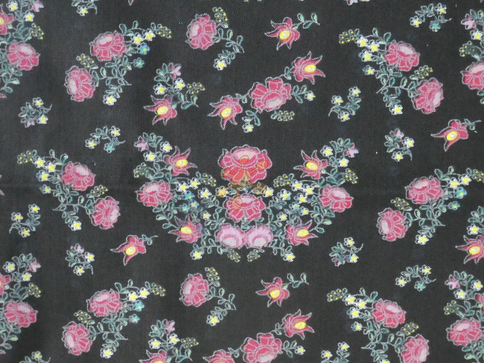 Klasické bavlnené plátno, farebné ľudové kvety na čiernom podklade, vhodné na sukne, košele, posteľné prádlo, vankúš, obrus...