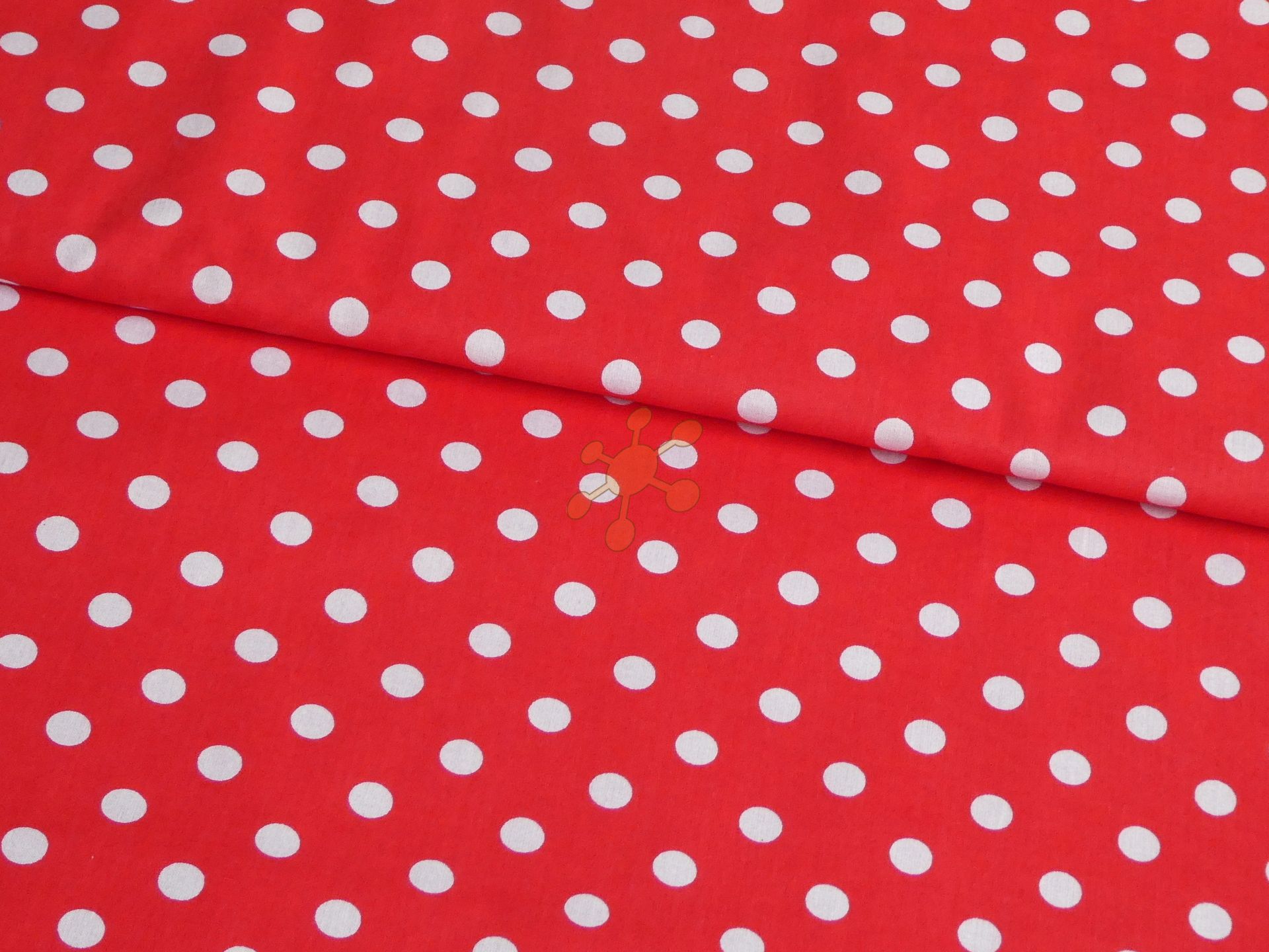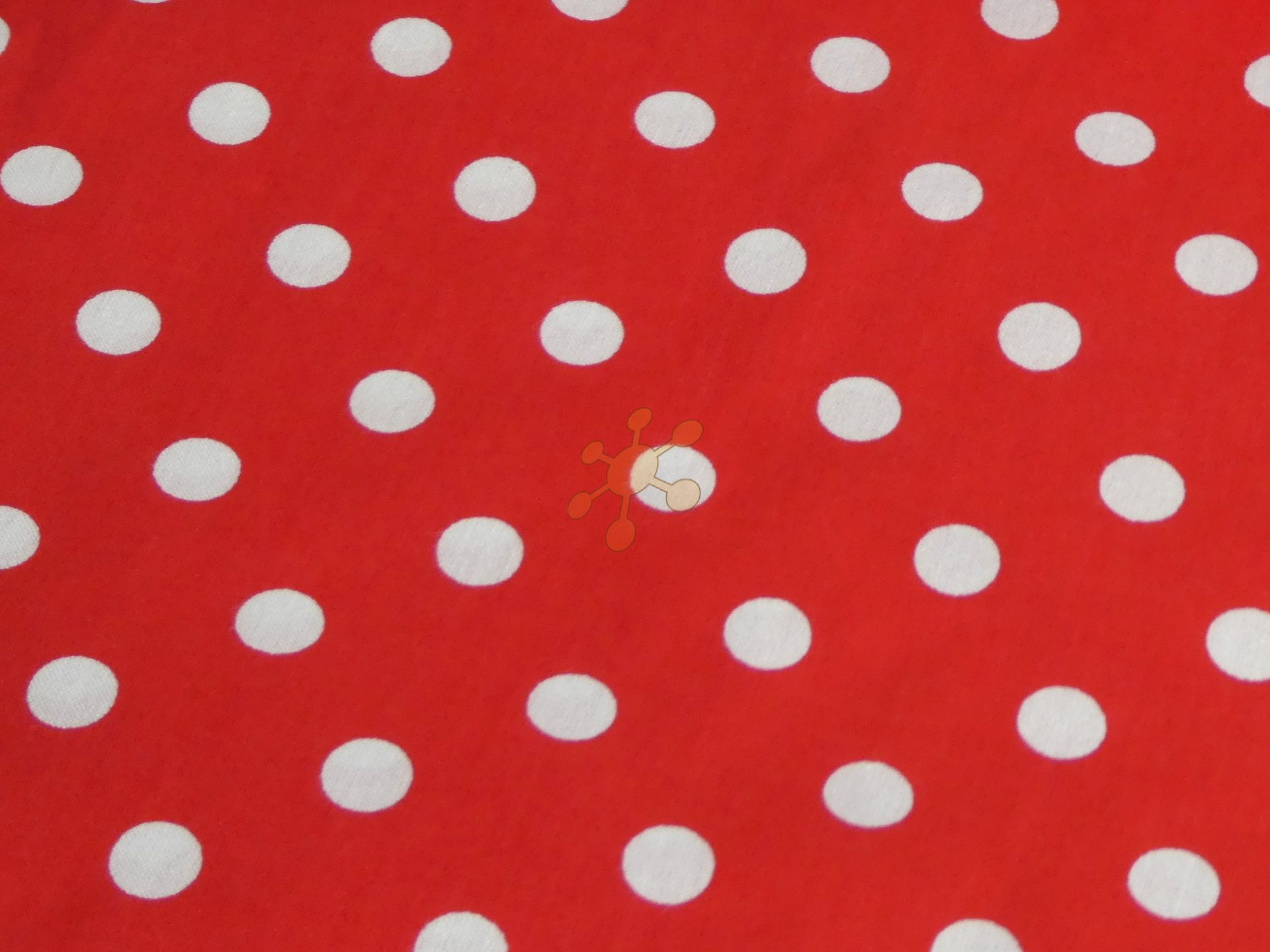 Bavlnené plátno, biele bodky v priemere asi 1 cm. Vhodné samostatne alebo v kombinácii s inou jednofarebnou či vzorovanou bavlnou...