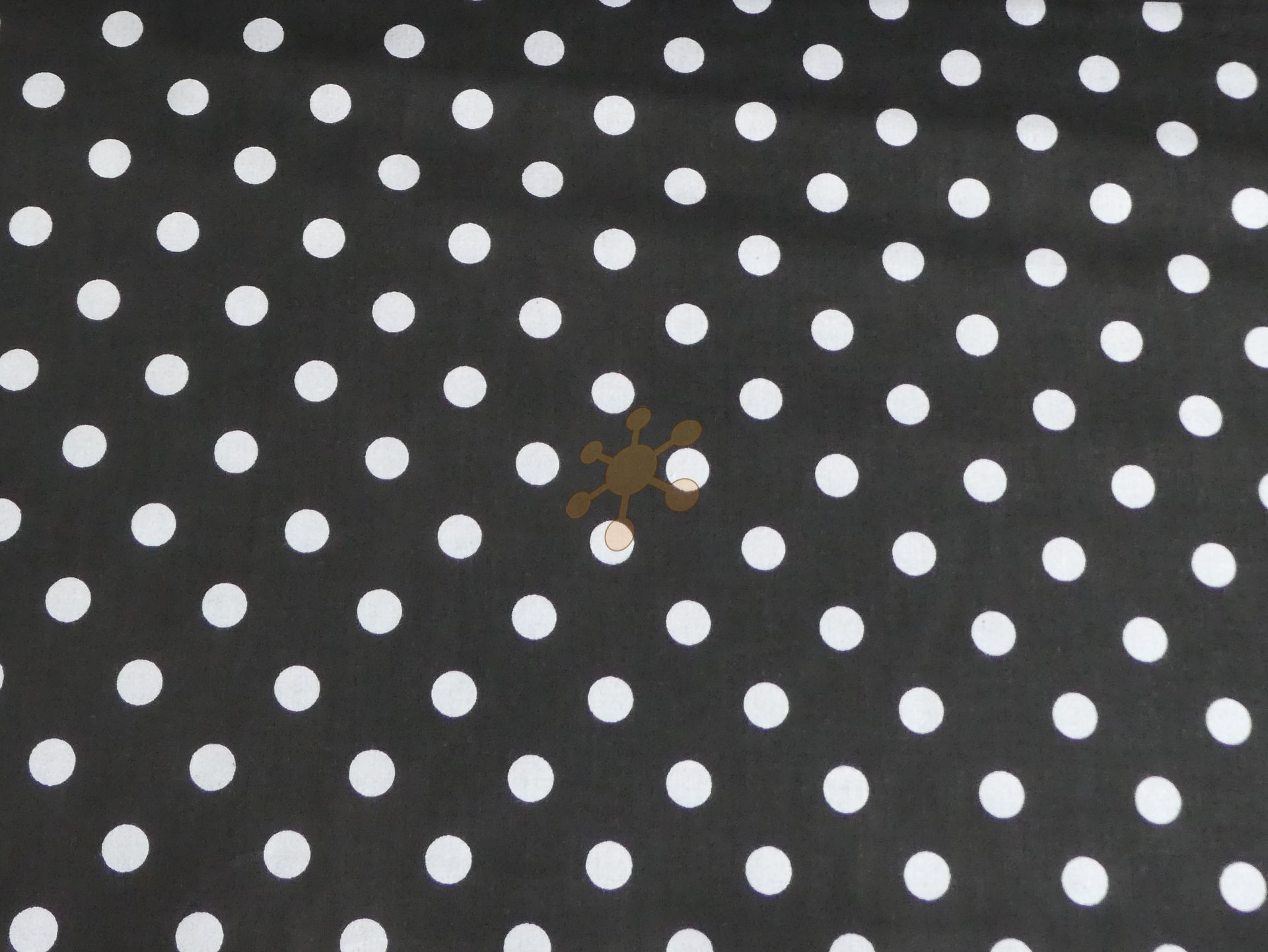 Bavlnené plátno, biele bodky v priemere vyše 1 cm. Vhodné samostatne alebo v kombinácii s inou jednofarebnou či vzorovanou bavlnou...