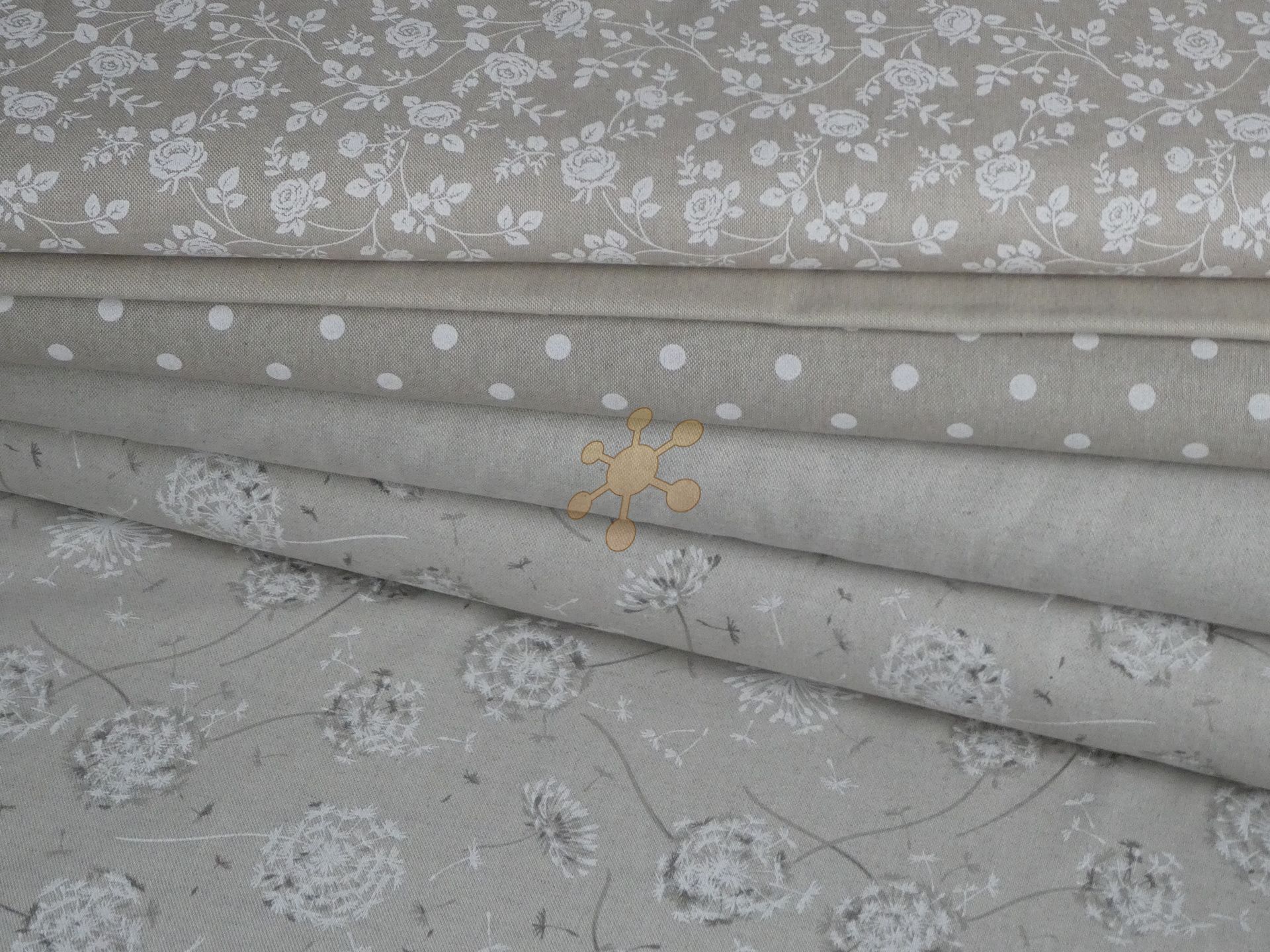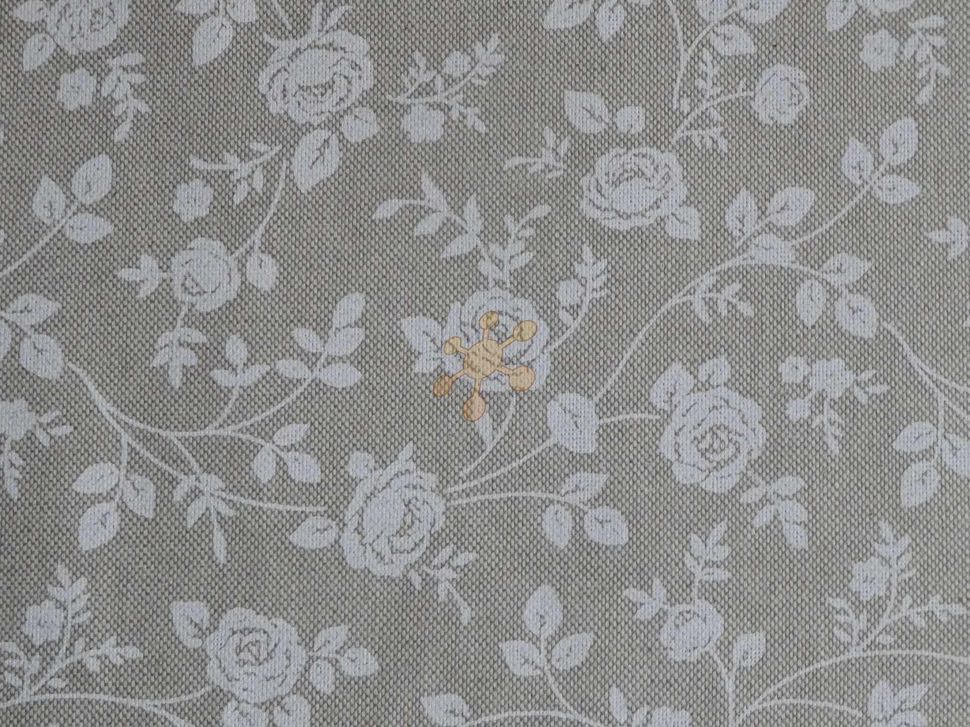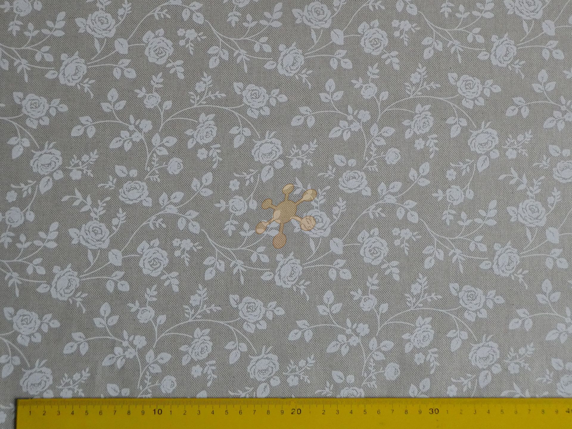 Stredne pevná poťahovka, zmes bavlny a polyesteru, biele ružičky na béžovej pre originálnu tvorbu...