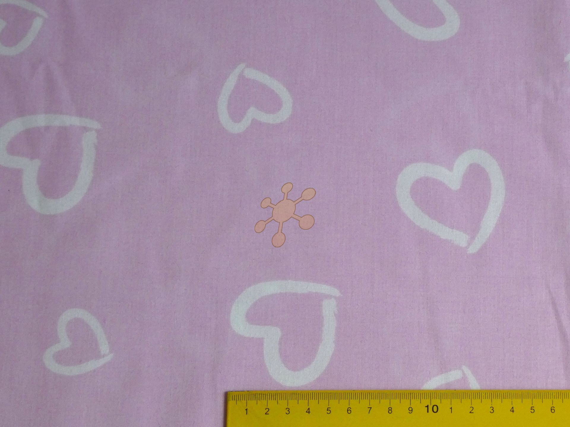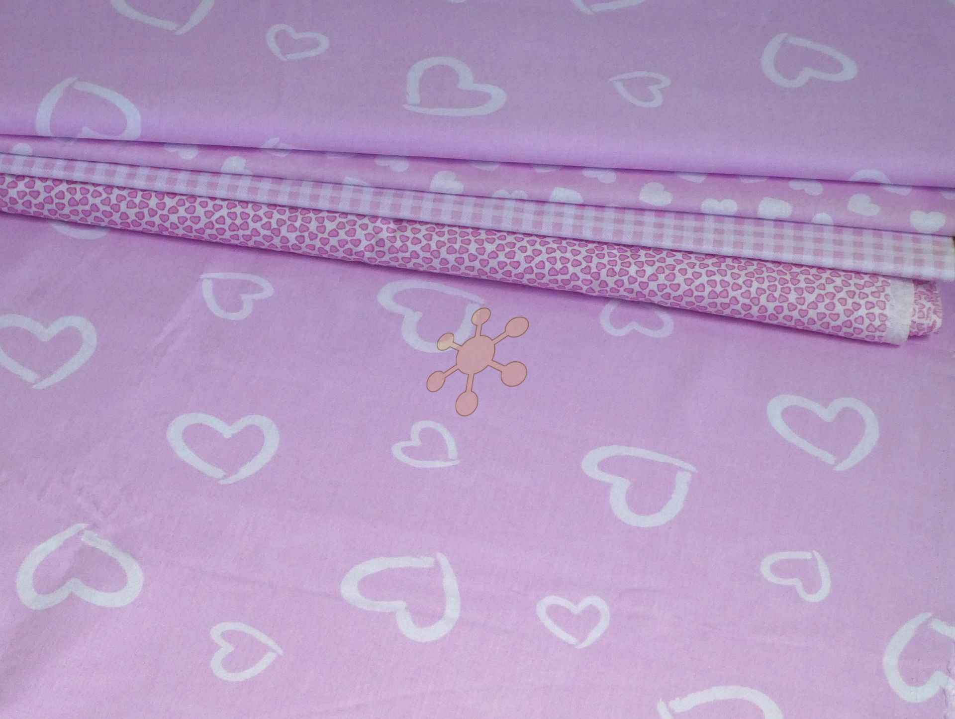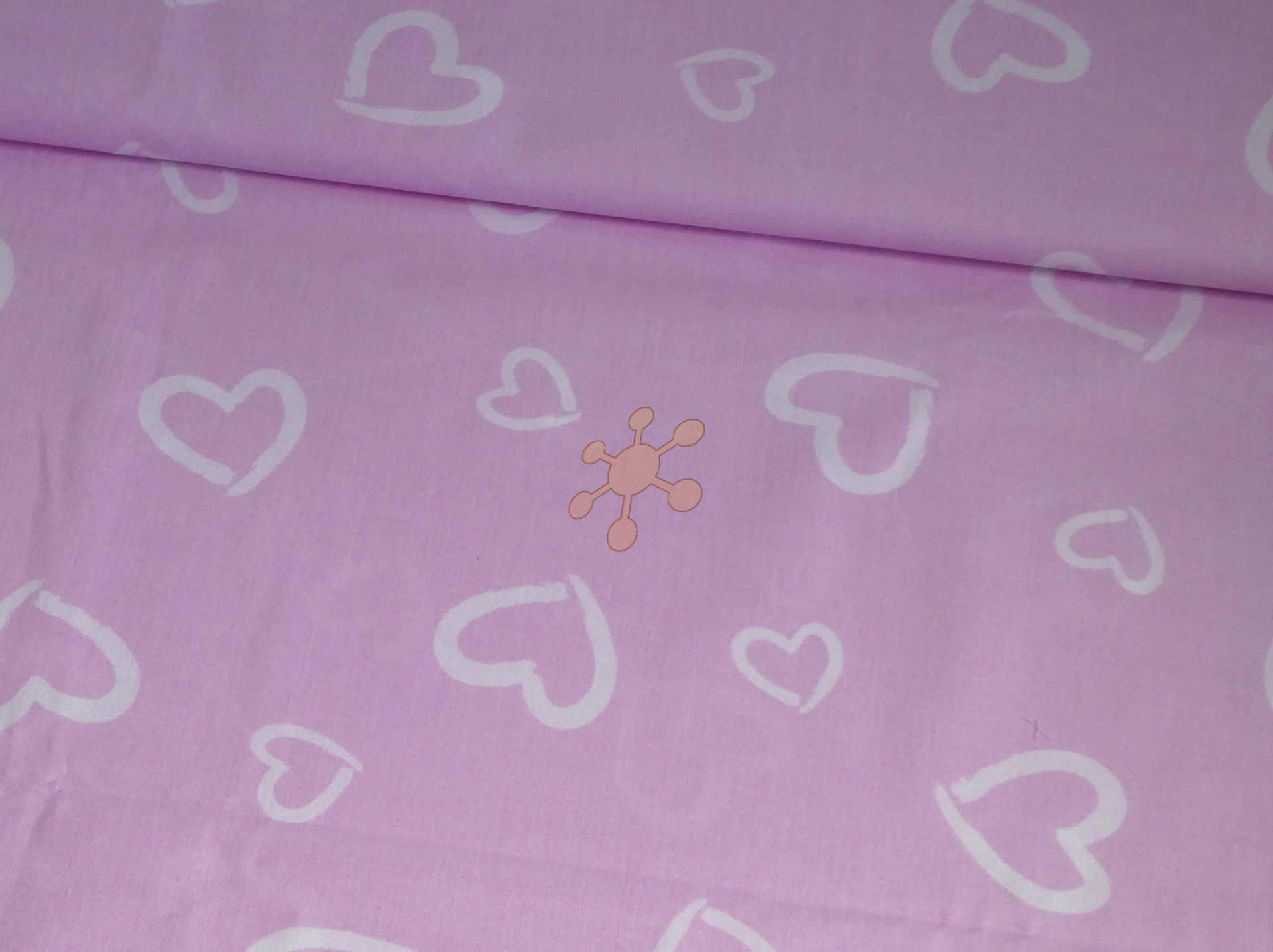Bavlnená látka s bielymi srdiečkami na ružovej.