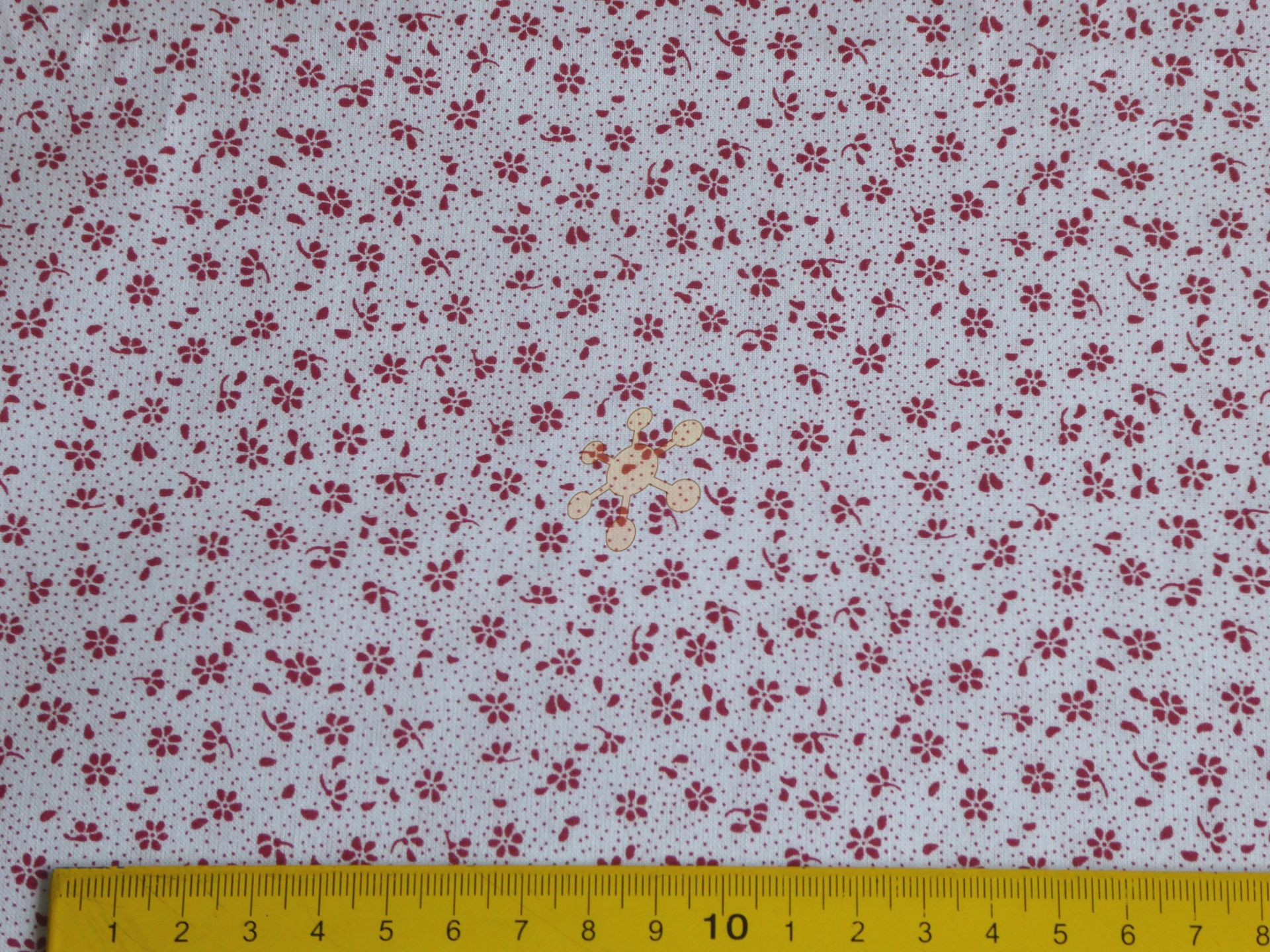 Bavlnené plátno s drobnými bordovými kvietkami na bielej