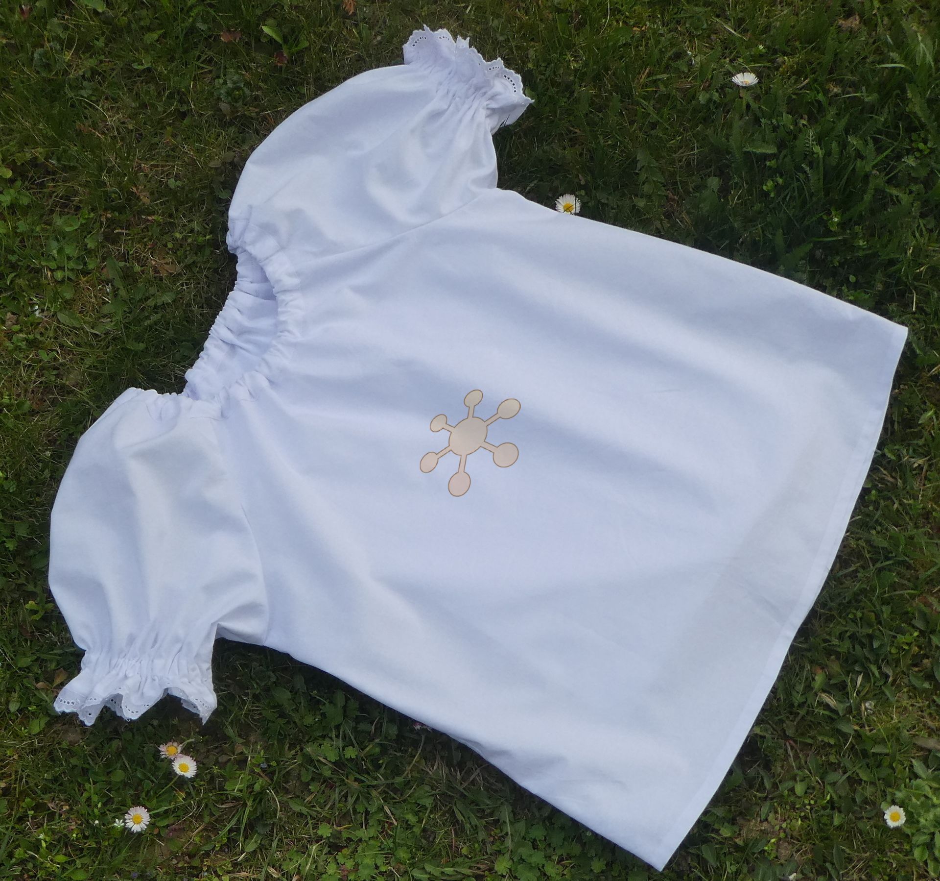 Košieľka v ľudovom štýle, ušitá zo 100% vyzrážanej bavlny, 135 g / m2, rukávy dozdobené bavlnenou madeirou.