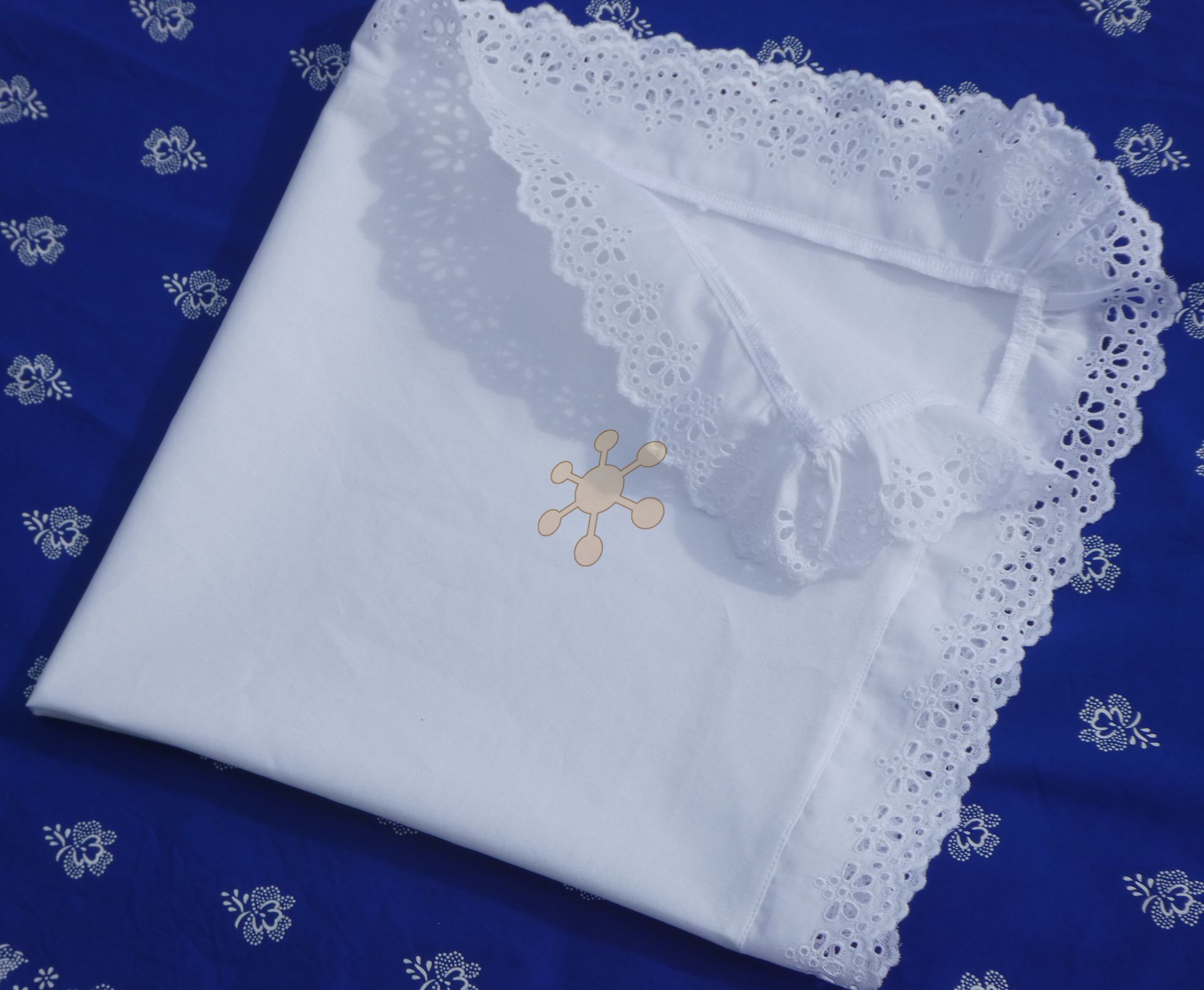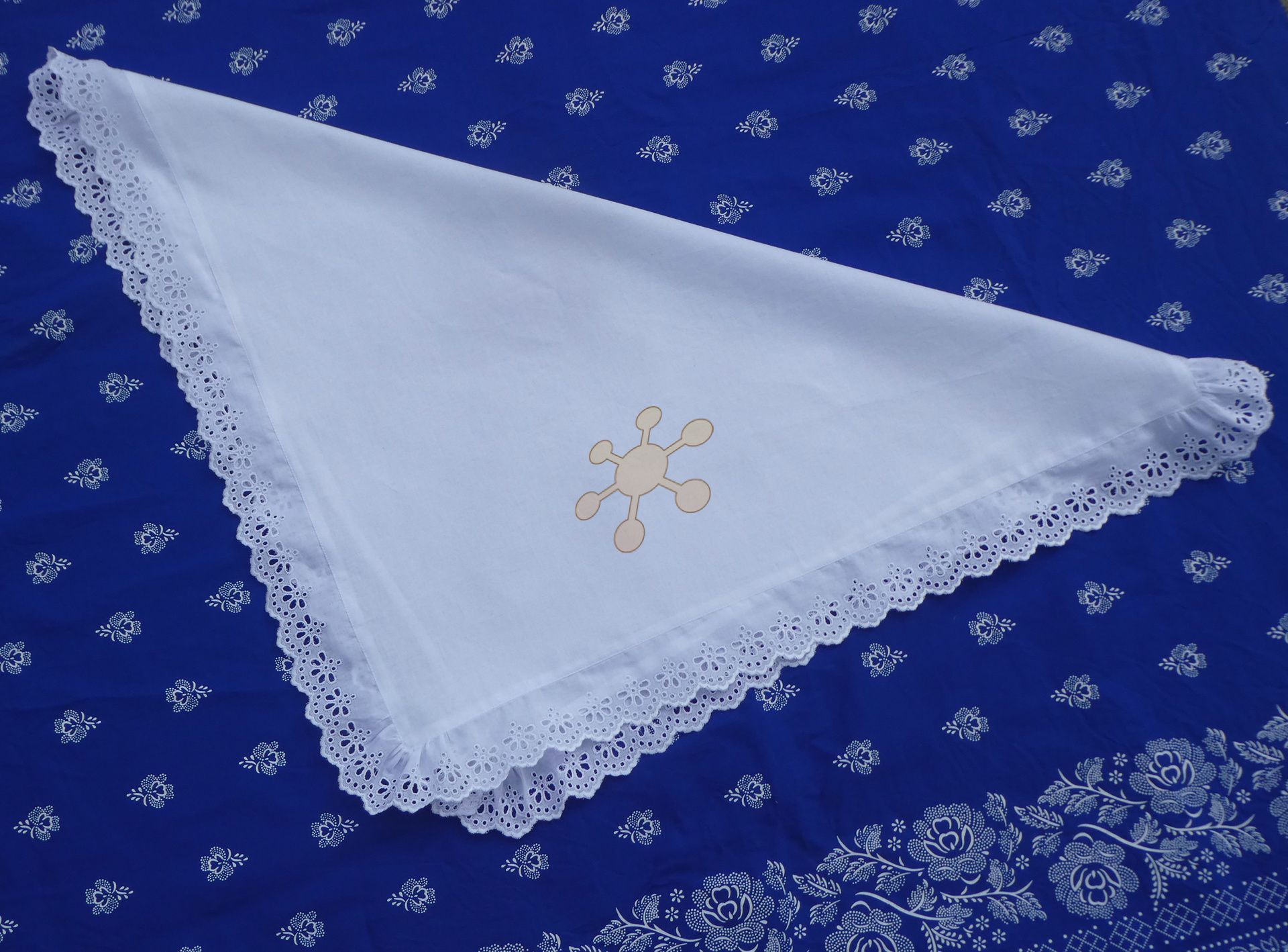 Svadobná šatka alebo obrúsok, dozdobená madeirou. Šatku viete potom využiť napr. i na fotenie s bábätkom...