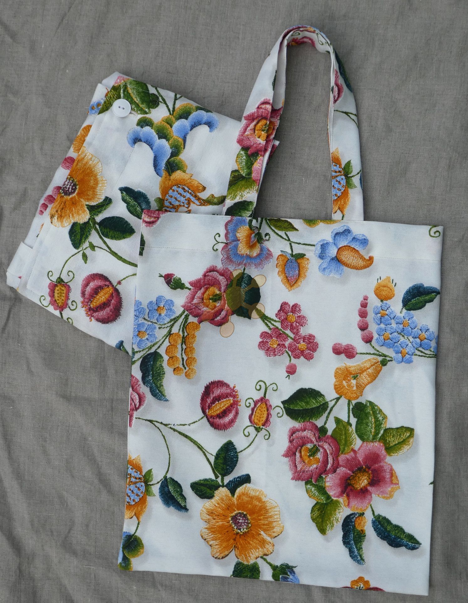 Klasická taška, bavlnená látka 210g, s potlačou kvetov plne vyšívaných.